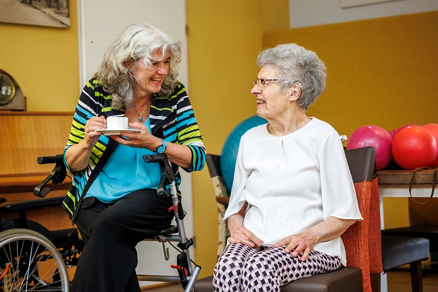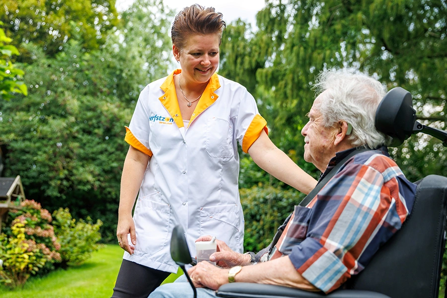 Een warm verpleeghuis met alle zorg- en behandelmogelijkheden voor mensen met lichamelijke beperkingen of dementie.