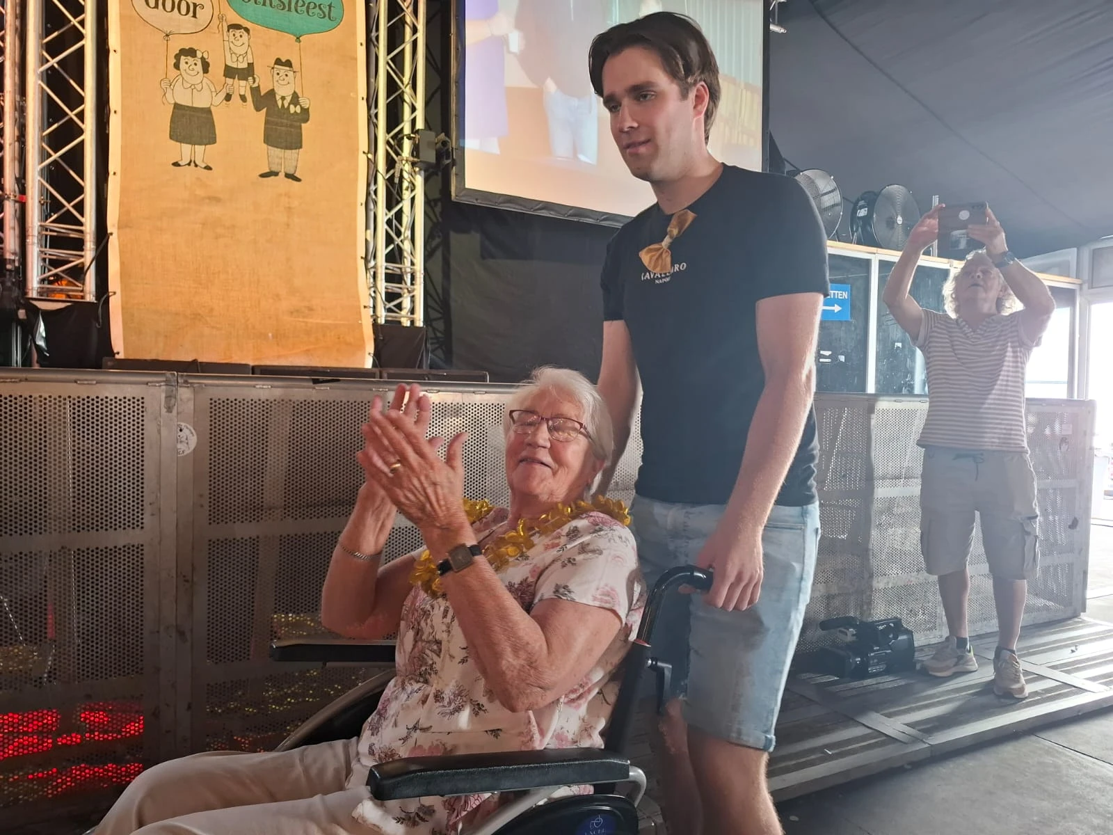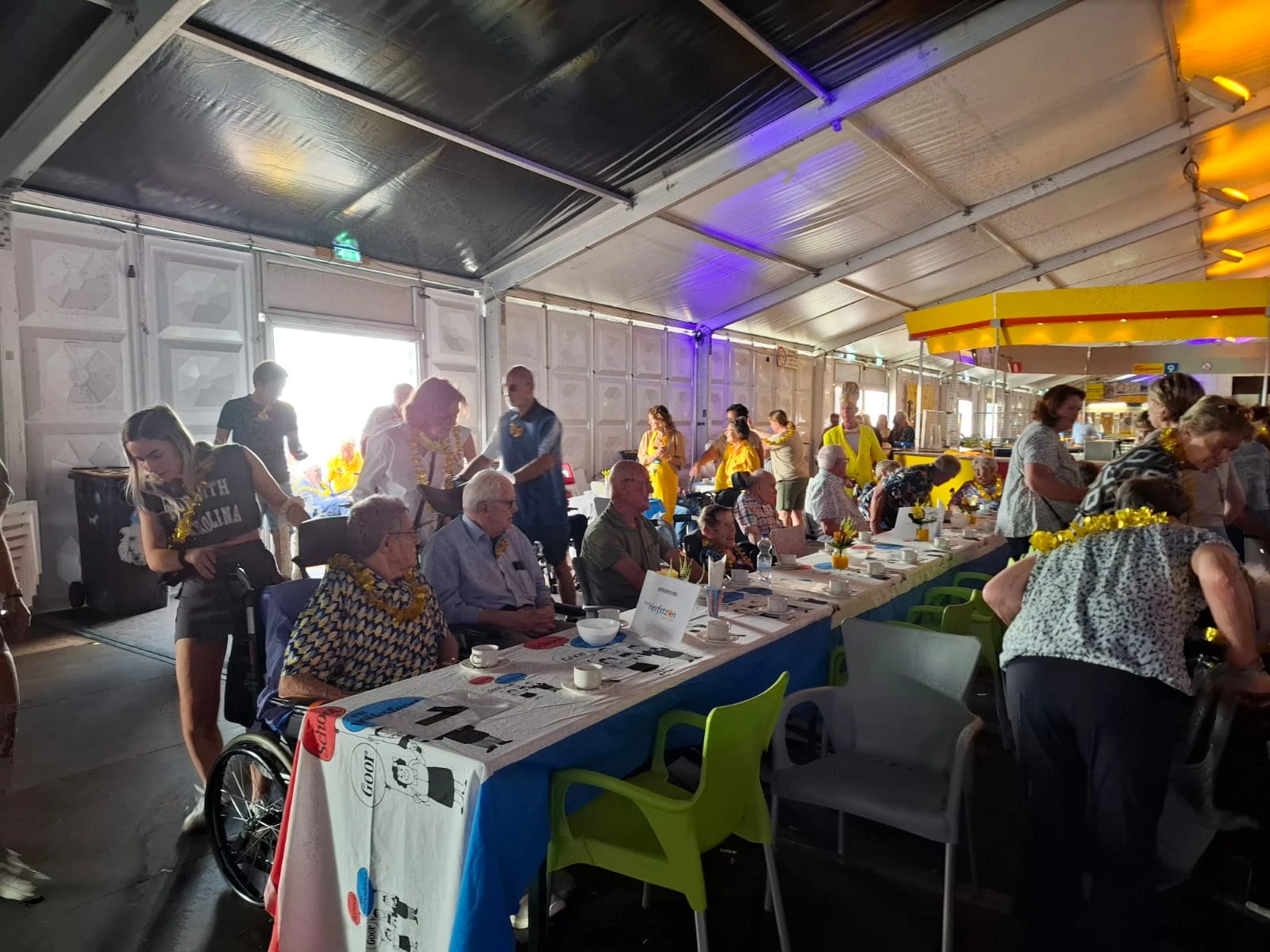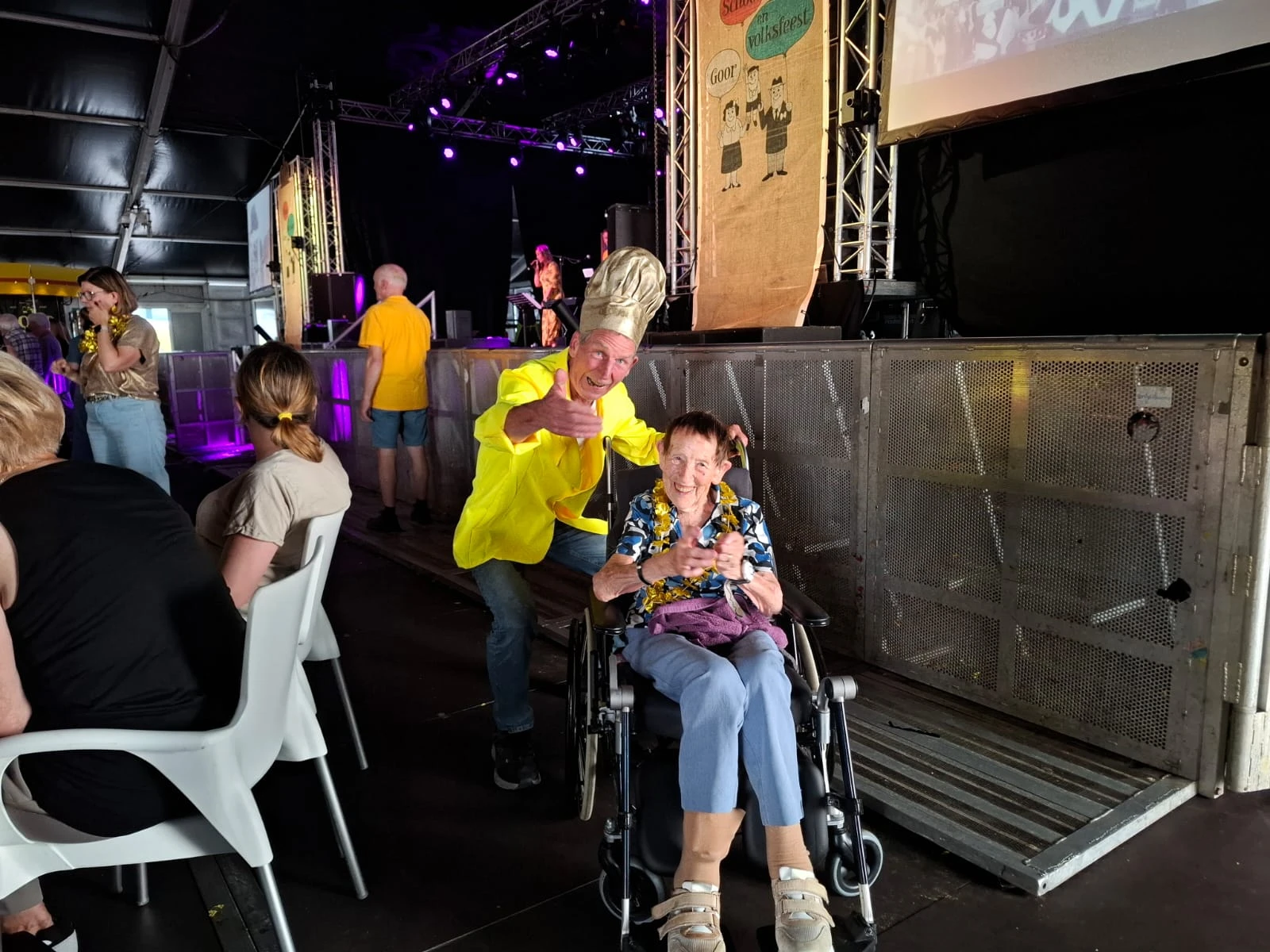 Maar liefst vijfentwintig bewoners en net zo veel vrijwilligers waren van de partij op de seniorenmiddag in de Schoolfeesttent. Iedereen genoot van de muziek, een drankje en een hapje. Veel dank aan onze vrijwilligers en zorgmedewerkers, die graag mee gingen!