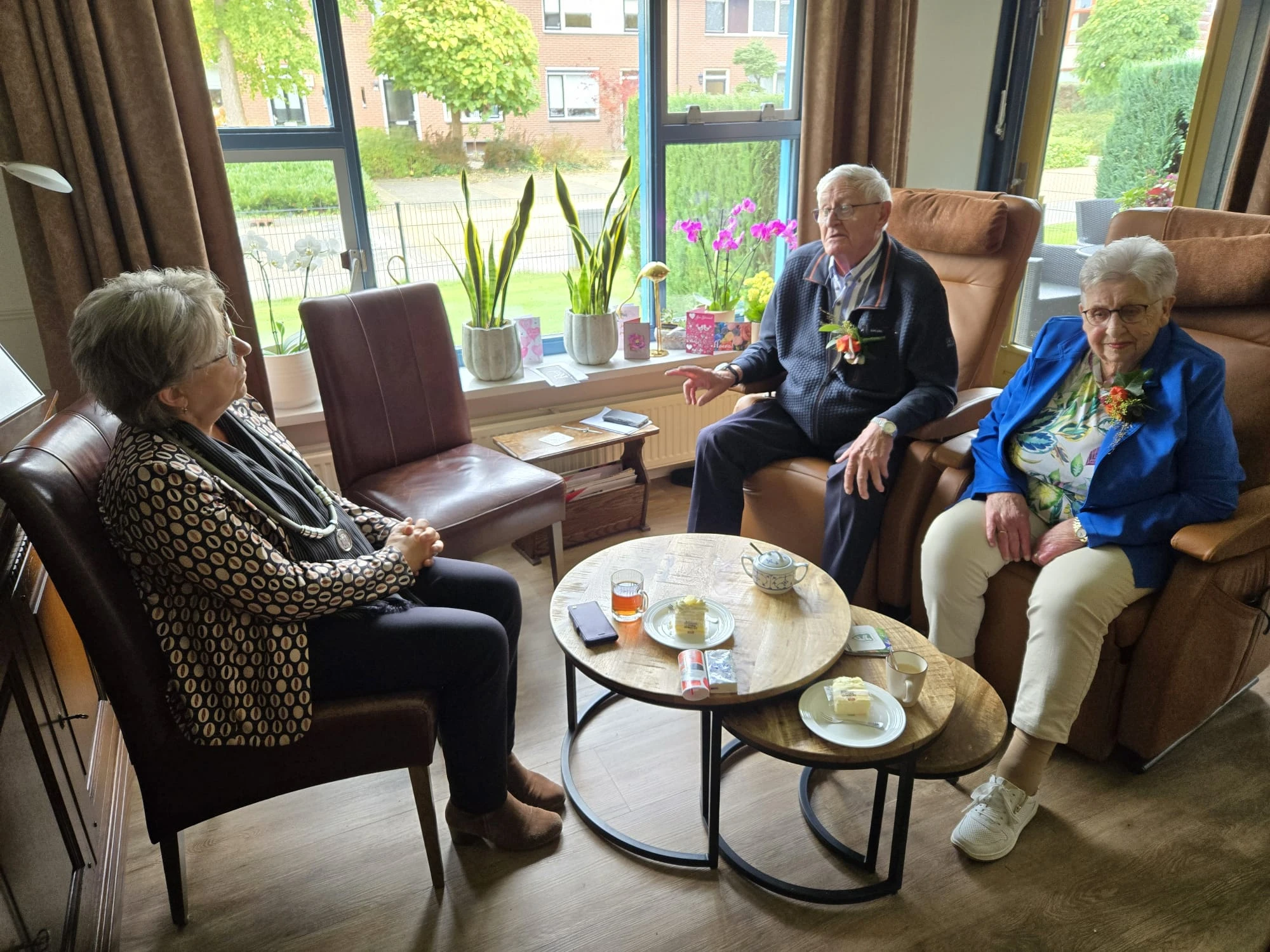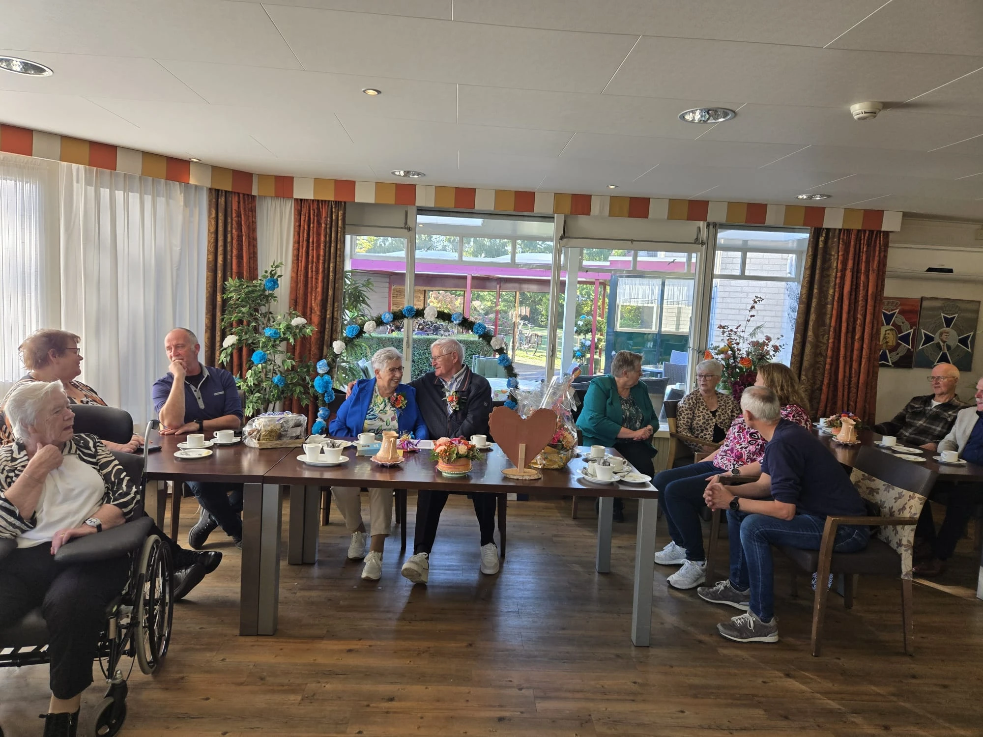 's Morgens organiseerde Huize Herfstzon een groot feest voor hen in de zaal. 's Middags kwamen directeur Angelique Lamme van én burgemeester Ellen Nauta op bezoek. En 's avonds gingen de jubilarissen uit eten met de kinderen. Ook stonden ze met een mooi artikel in de krant. Het was kortom een dag om niet te vergeten!