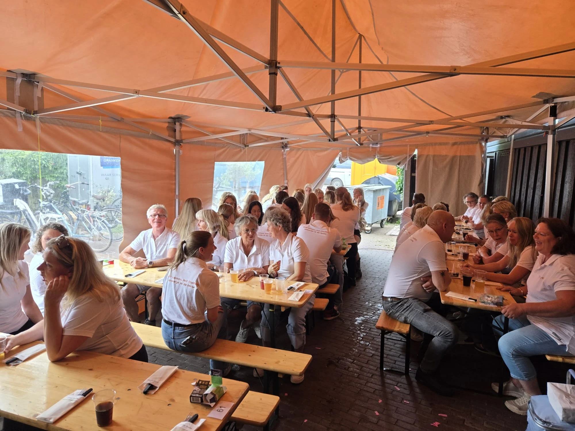 Voordat deze grote ploeg gezellig aan de borrel ging, werd er lekker gegeten bij d'Olde Smidse.