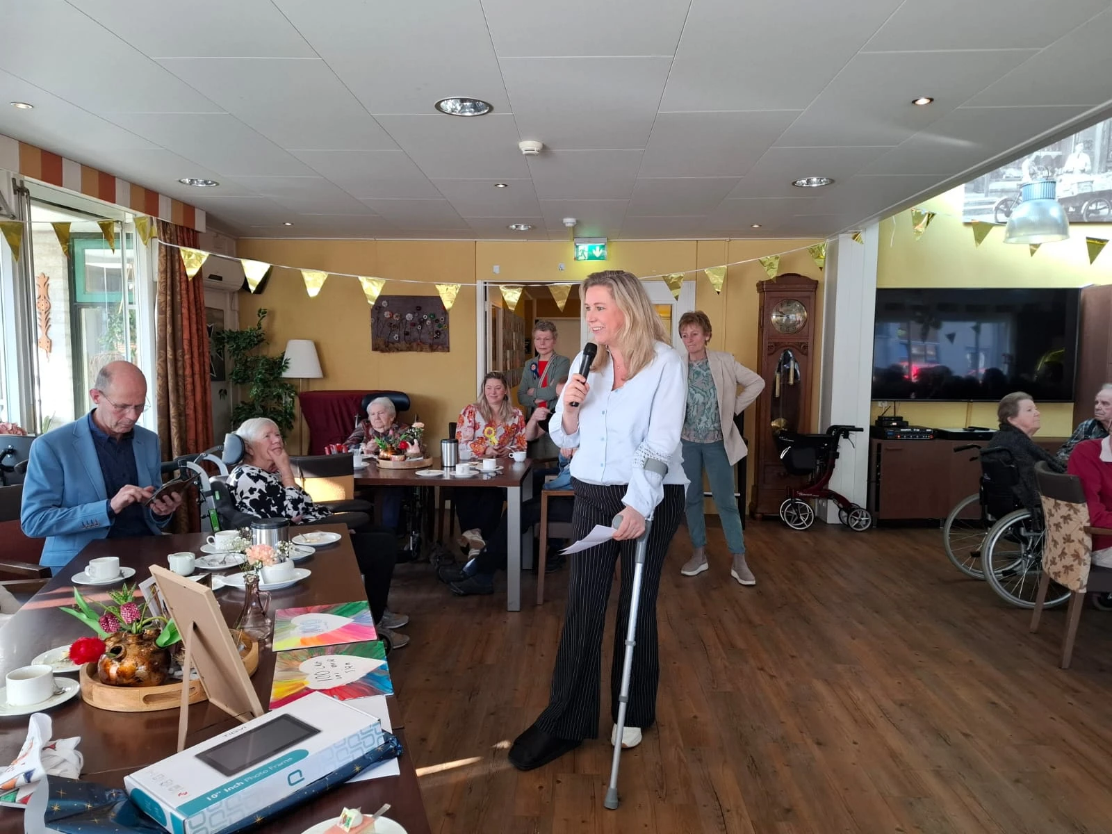 Mevrouw Morsink-Exterkate vierde vrijdag 7 maart haar 100-ste verjaardag op Huize Herfstzon. Met bewoners, familie én burgemeester Nauta. 's Morgens was er koffie met gebak voor iedereen in het restaurant. Veel bewoners en familieleden deelden in de feestvreugde! De muzikale omlijsting werd verzorgd door Frans en mevrouw de burgemeester was eregast.