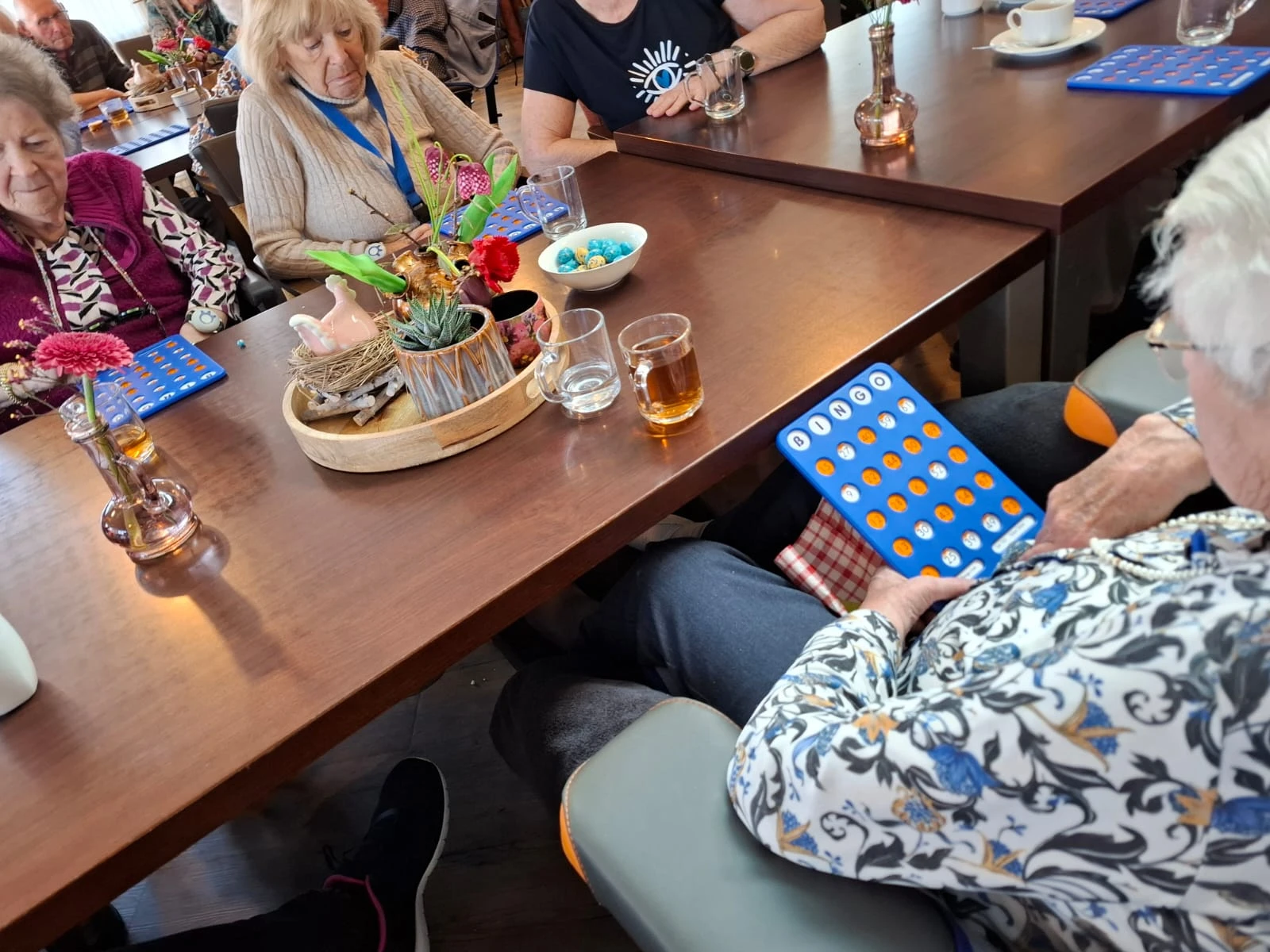 Voorjaar betekent: onze traditionele paasbingo. Op vrijdag 4 april draaide directeur Angelique zoals elk jaar de balletjes. Er gelden maar twee regels: iedereen verlaat de zaal met een prijs én: bij een valse bingo moet er een lied gezongen worden!