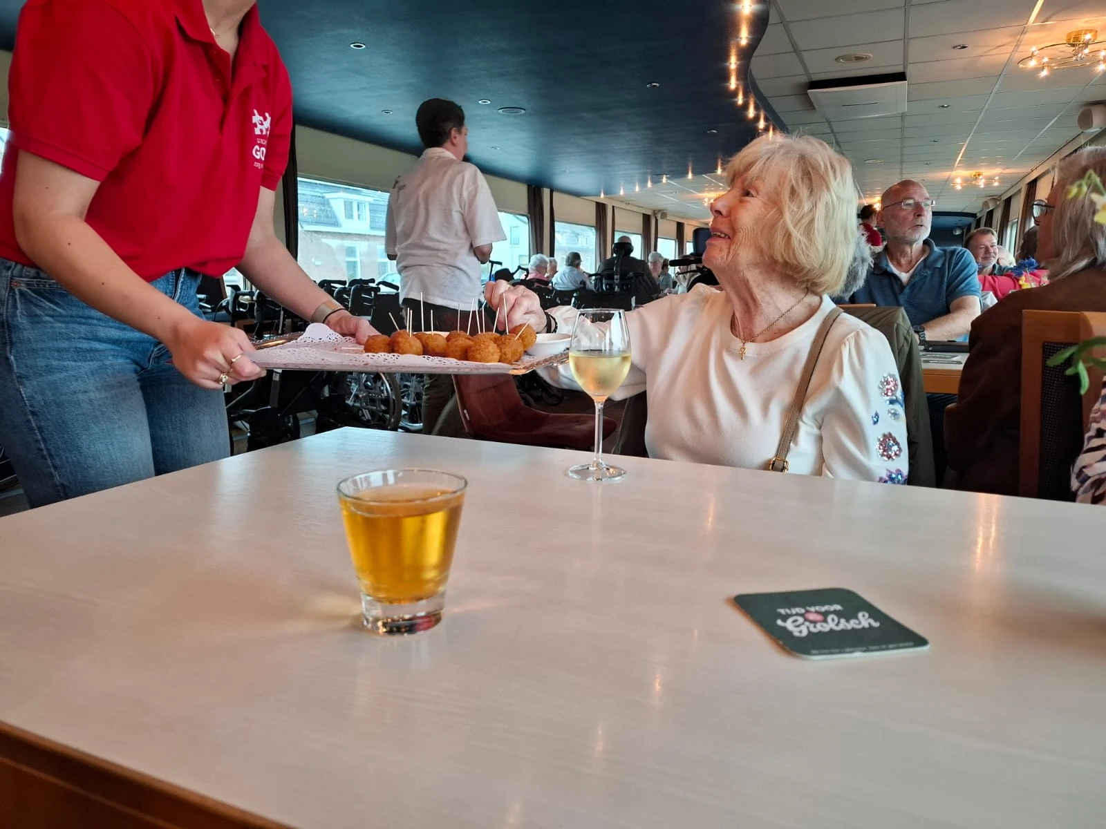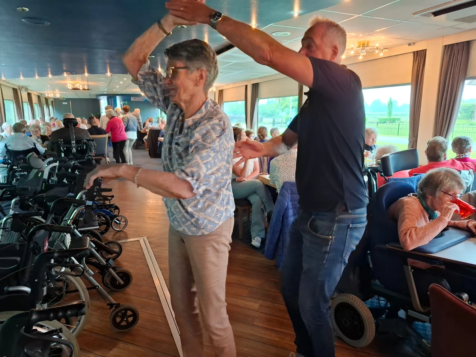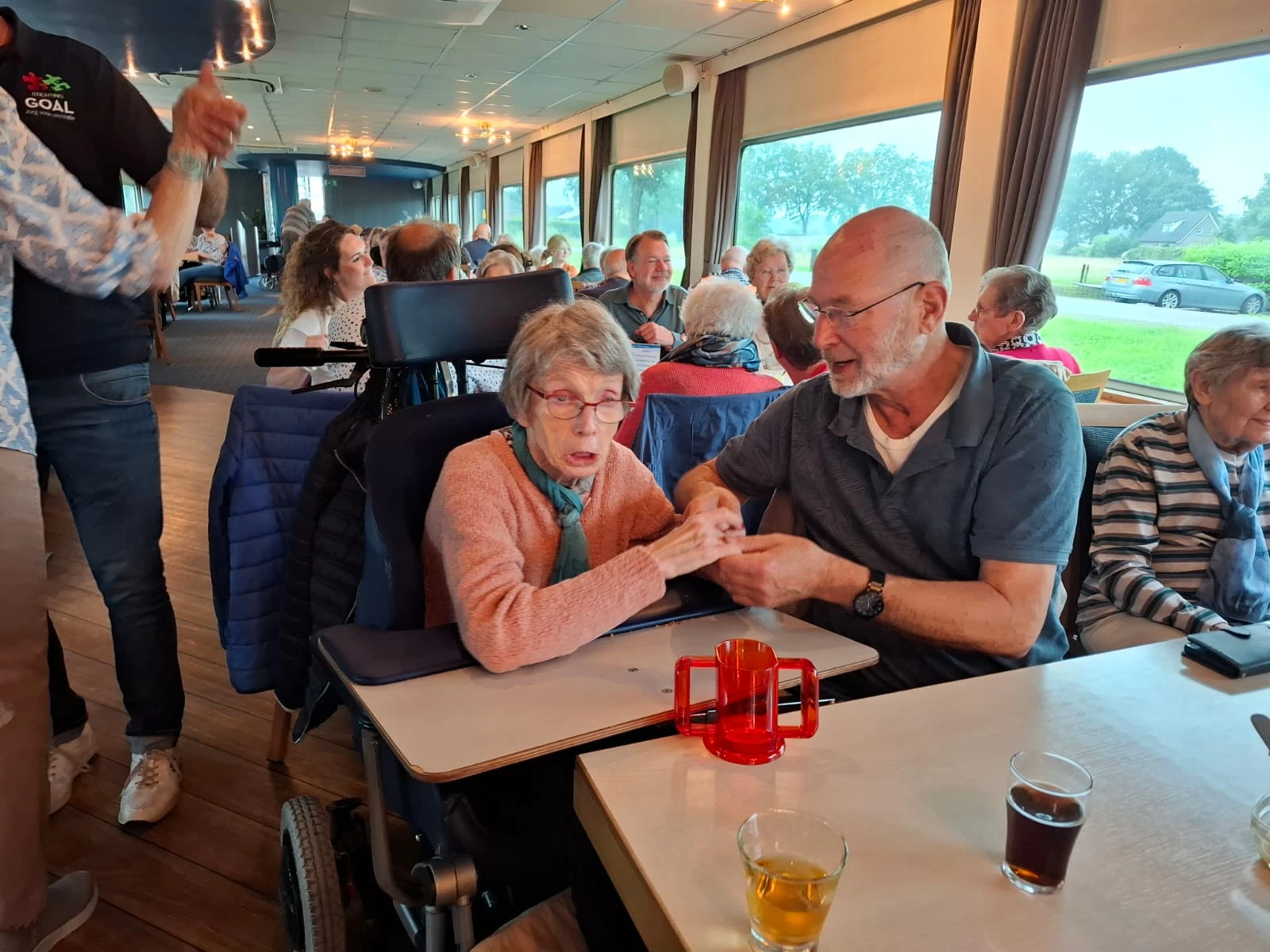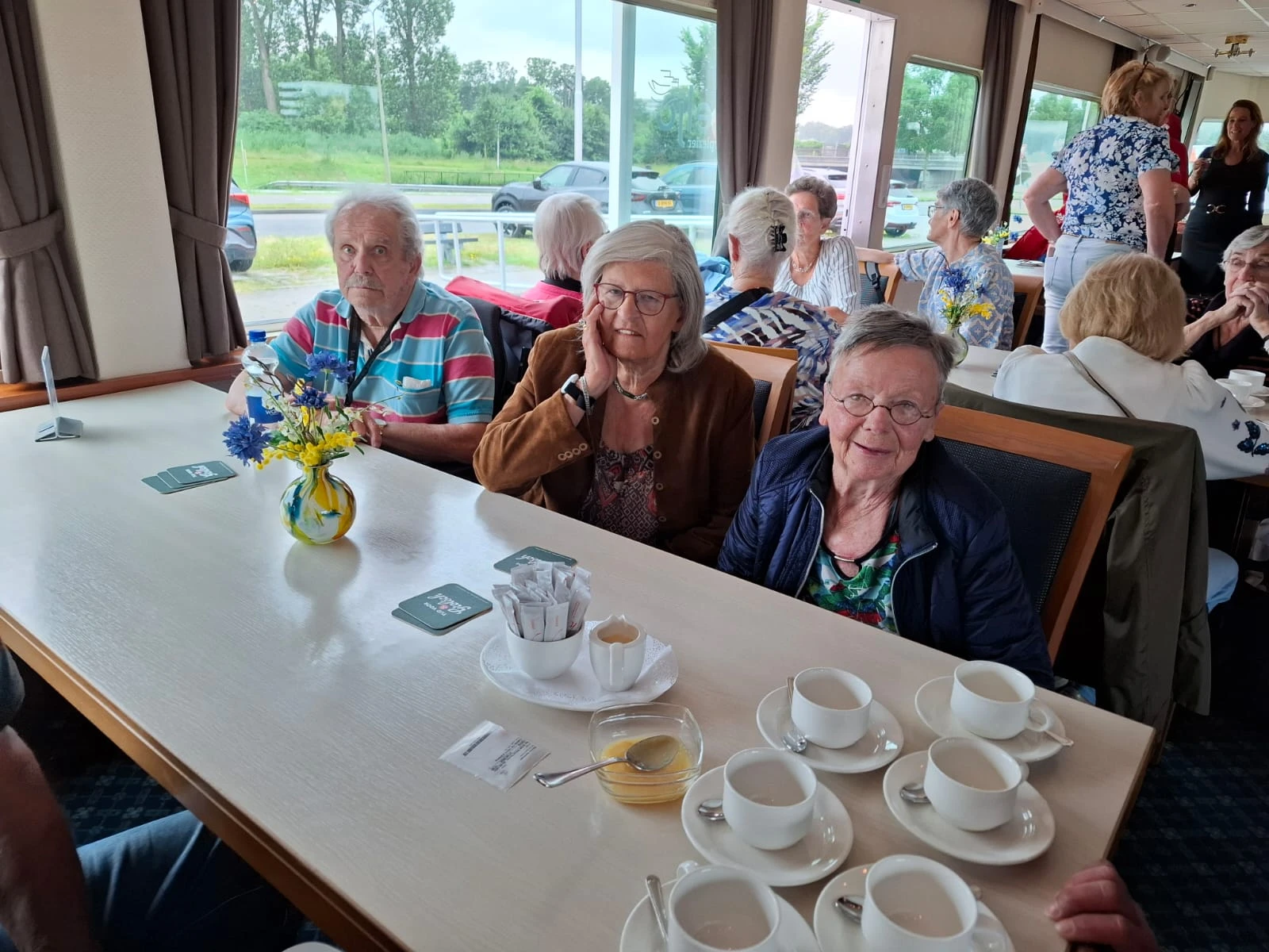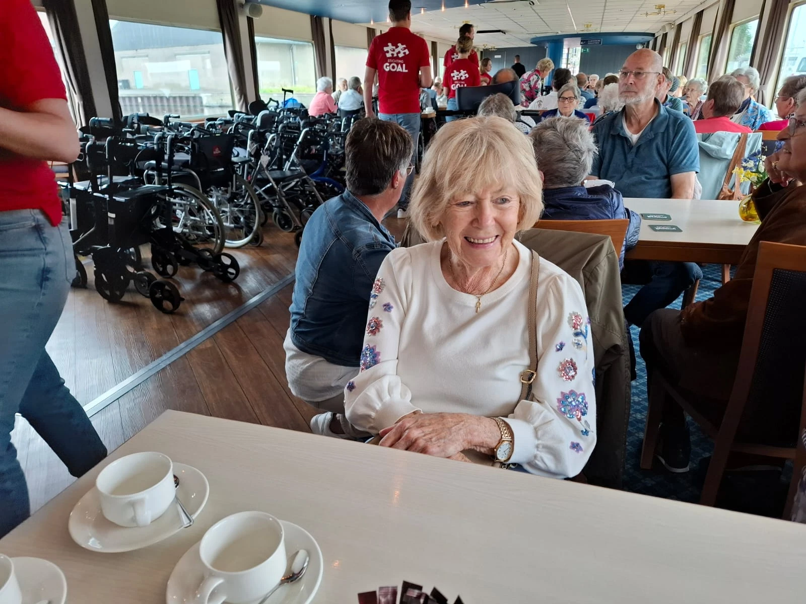 Vrijdag 21 juni maakte een aantal bewoners een mooie boottocht, dit dankzij de Stichting Goal. Op deze eerste officiële zomerdag regende het, maar iedereen heeft genoten. Van de de gezelligheid, het driegangendiner én de muziek.