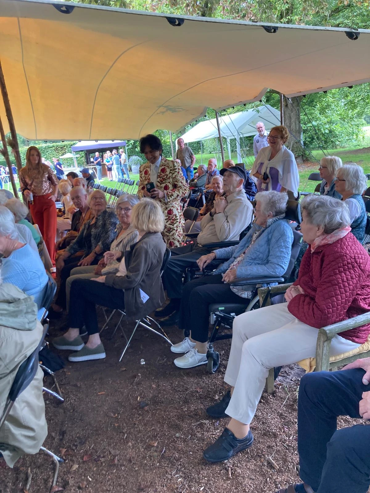 Dertien bewoners van Huize Herfstzon gingen op 22 augustus naar Villa Peckedam in Diepenheim voor een Meet & Greet met Wibi Soerjadi. Ook van het concert hebben ze bijzonder genoten. Een heerlijke belevenis in de buitenlucht! De toegangskaarten voor het concert van Wibi Soerjadi en zijn 'summercourse-leerlingen' kregen we - net als vorig jaar - via de Stichting Goal.