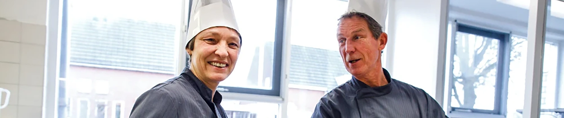Huize Herfstzon in Goor is daarom extra trots op haar beide koks. Hennie Ordelman (59) vierde deze zomer haar veertigste jubileum. ‘Ik ben erin gerold. Vroeger was het heel gewoon dat je als zorgmedewerker af en toe kookte. Na een aantal jaren ging ik volledig de keuken in.’ Johan Rikkert (60): ‘Vroeger werkte ik in grotere huizen waar het koken er steeds meer uit ging. Ik liep hier een keer binnen en dacht: dat is mooi werken!'